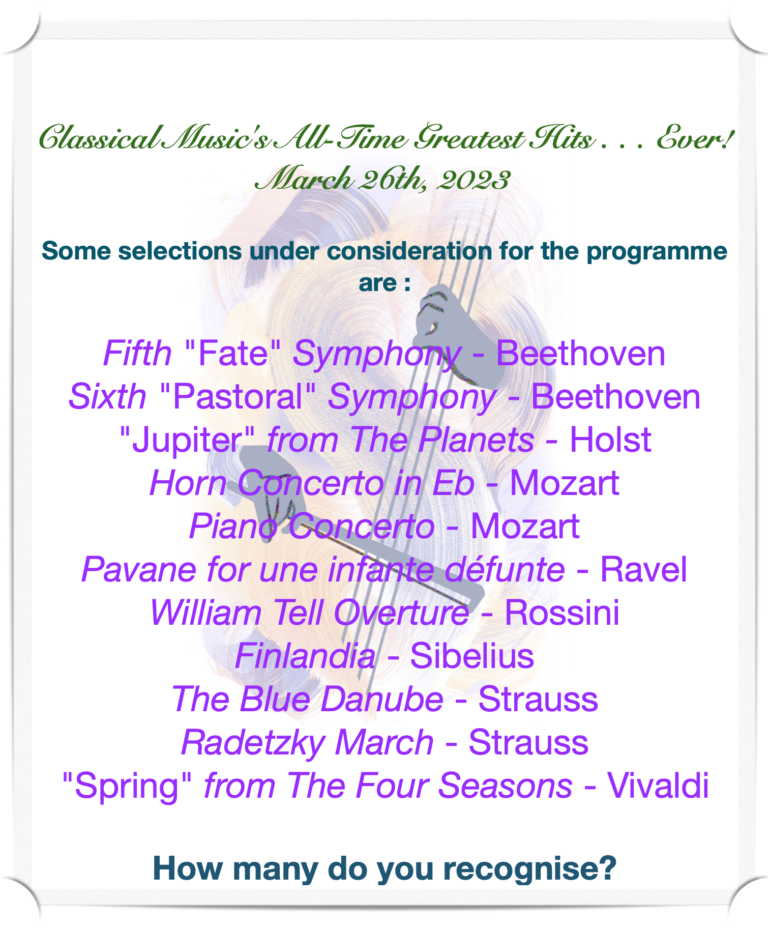 March 26th will be a Classical Music Highlights concert. Something for everyone to enjoy. Three soloists will be performing from 3 to 5PM at the The Salvation Army Chilliwack Community Church, 46420 Brooks, Chilliwack.
