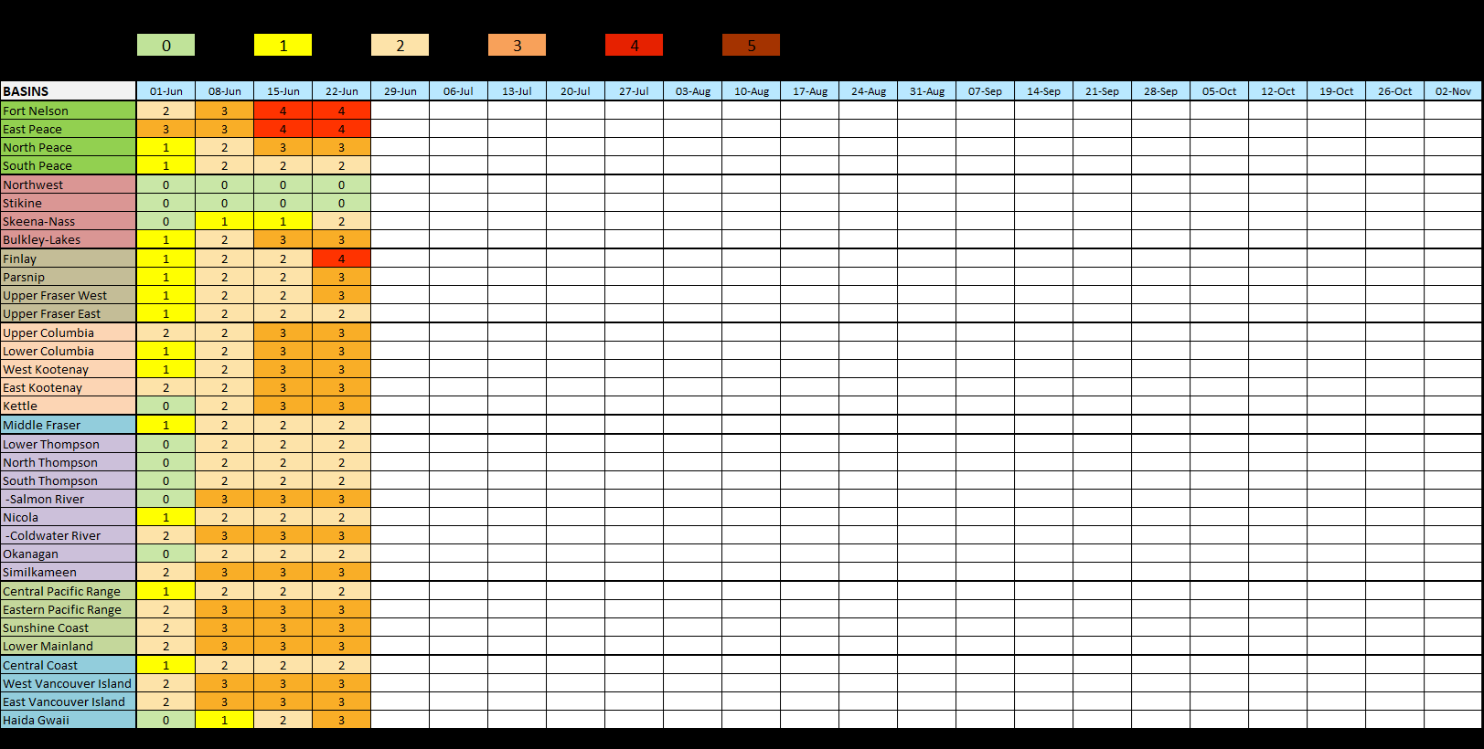British Columbia ranks drought levels from 0 to 5, with Drought Level 5 rated as the most severe with adverse impacts to socio-economic or ecosystem values being almost certain.