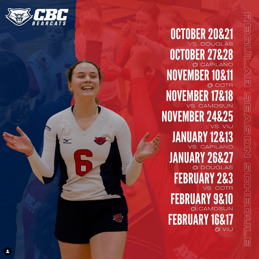 2023-24 CBC Women’s Volleyball Schedule/Instagram