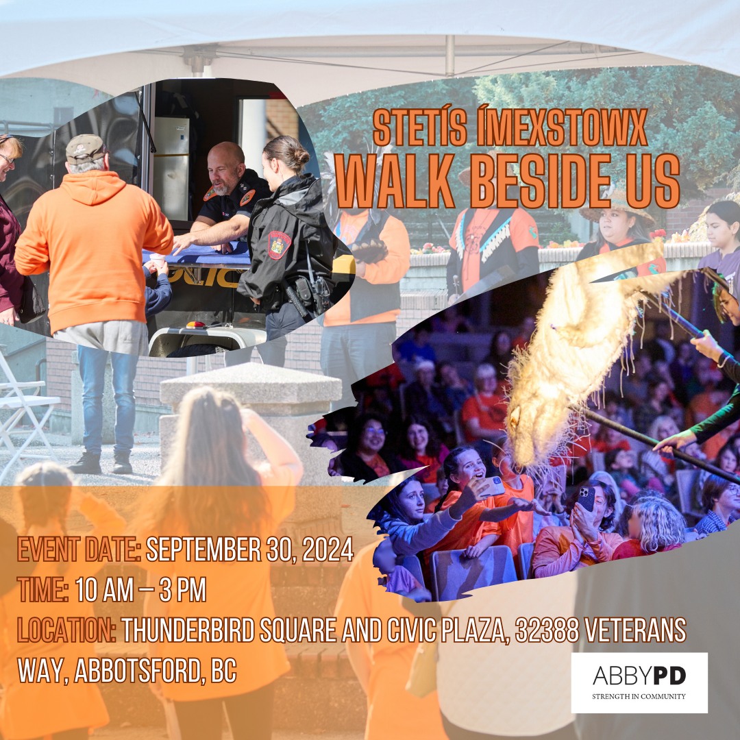 Following the impact of last year’s inaugural event, AbbyPD and dedicated community partners invite you to join for the second annual gathering as we acknowledge and commemorate our commitment to Truth and Reconciliation on the traditional and unceded territories of Mathxwí First Nation, Semá:th First Nation, and Leq’á:mel First Nation.