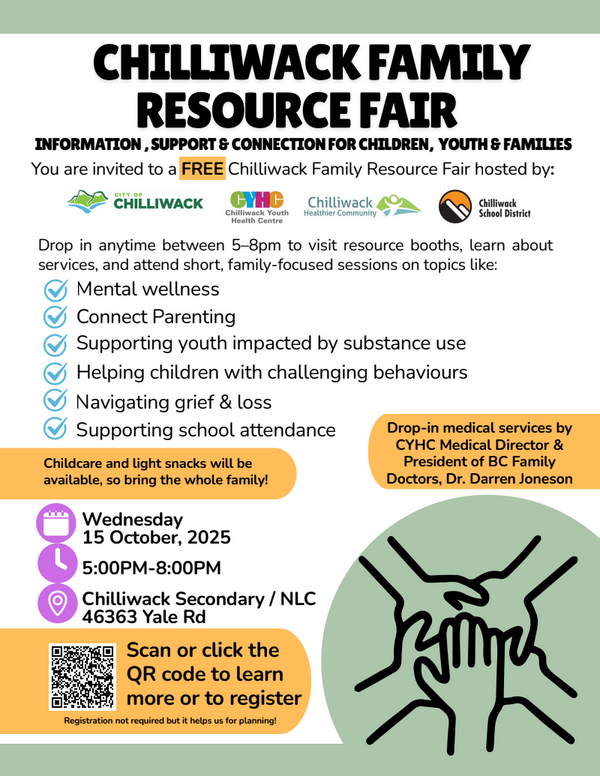 Chilliwack – On Wednesday October 15, the Chilliwack Family Resource Fair will be hosted by the Chilliwack School District, the Chilliwack Youth Health Centre, the City of Chilliwack, and Chilliwack Healthier Community.