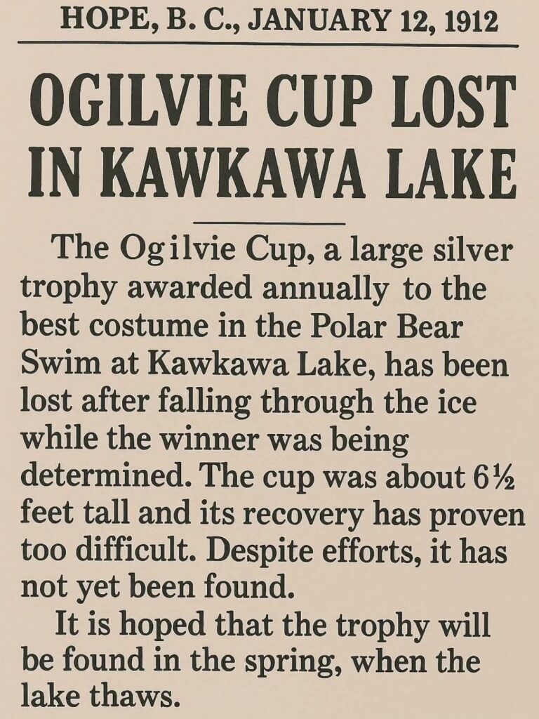 Has the Oglivie Cup Been Found? – Over 100 Years Ago, Given to Best Costume at Kawkawa Lake Polar Bear Swim