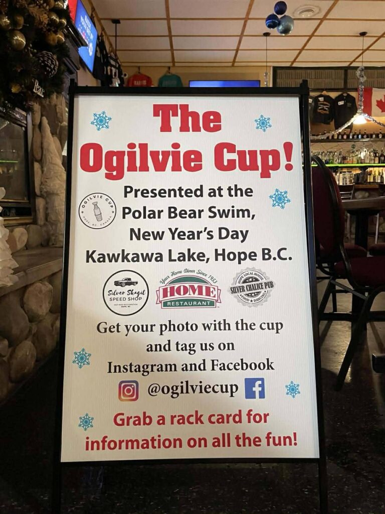 Hope/Kawkawa Lake – UPDATE – The reveal of the Ogilvie Cup was Friday December 5 at The Hope Local House – Silver Chalice Pub. Now there remains some question as to the authenticity of this find in Kawkawa Lake.