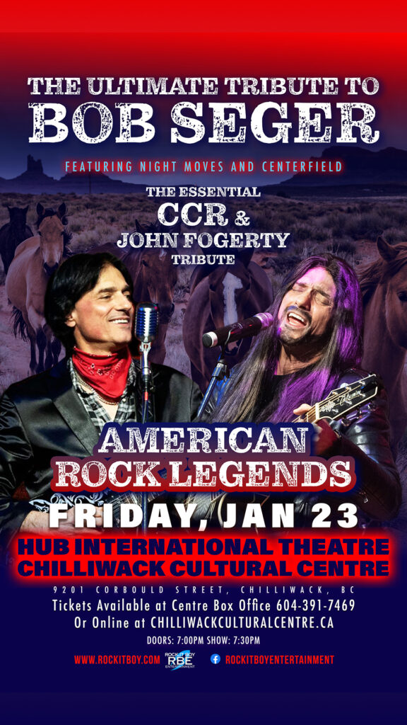 Chilliwack – Rock.It Boy Entertainment presents AMERICAN ROCK LEGENDS FEATURING: NIGHT MOVES – THE ULTIMATE TRIBUTE TO BOB SEGER AND CENTERFIELD – THE ESSENTIAL TRIBUTE TO CCR AND JOHN FOGERTY