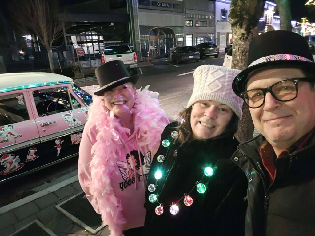 Mavis Hnidy, Tina Lynne and Brett Trevor pieced together a last minute plan to have people show up at Chilliwack’s Five Corners at 11:45PM on New Year’s Eve, to ring in the New Year.