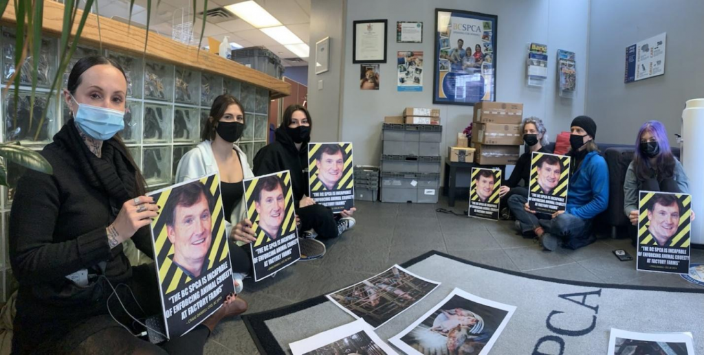 “Instead of addressing the real issues behind animal cruelty at factory farms across BC, the police and the BCSPCA are choosing to criminalize animal rights activists,” said Kira Cheeseborough, the activists’ media liaison. “Activists are simply demanding accountability from law enforcement for the millions of animals without the oversight and protection they deserve.”